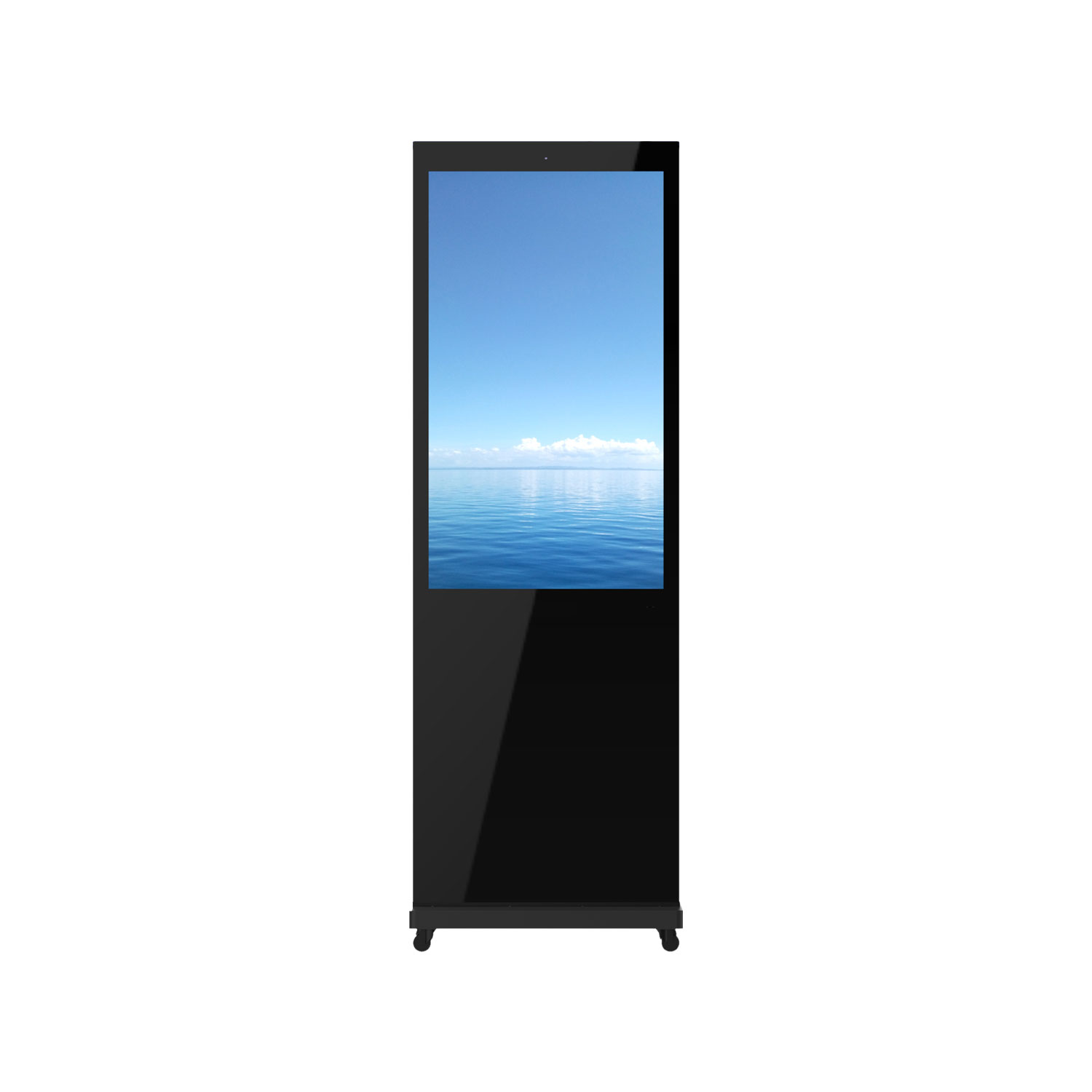 Totem multimediale da interno ad alta luminosità, ultra sottile e interattivo. Design minimale, Finitura vetro lucido verniciato in nero. Grazie alle ruote è possibile movimentarlo facilmente. Gode di 3 anni di garanzia e di tutta la qualità costruttiva Moai.