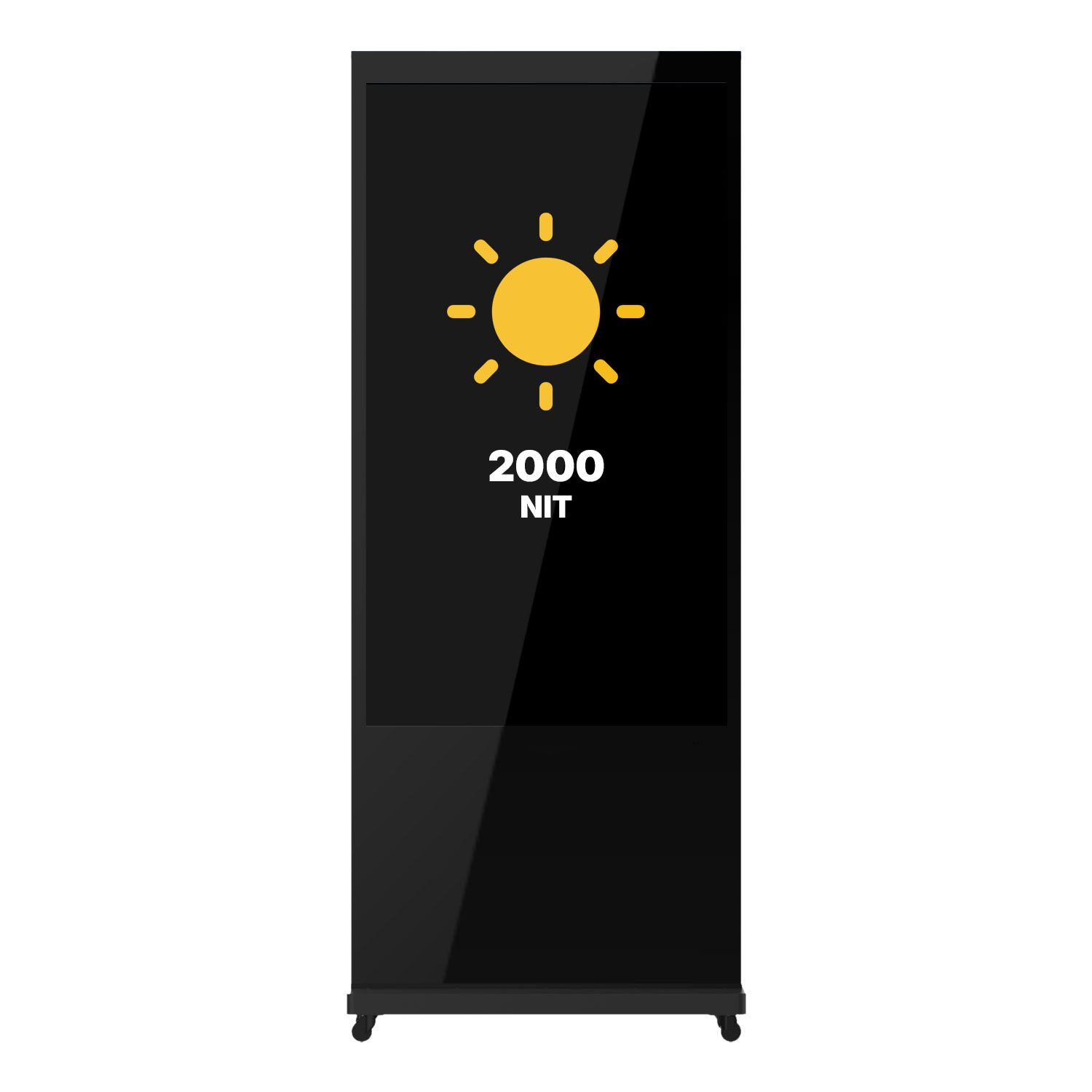 Totem multimediale da interno ad alta luminosità, ultra sottile e interattivo. Design minimale, Finitura vetro lucido verniciato in nero. Grazie alle ruote è possibile movimentarlo facilmente. Gode di 3 anni di garanzia e di tutta la qualità costruttiva Moai.