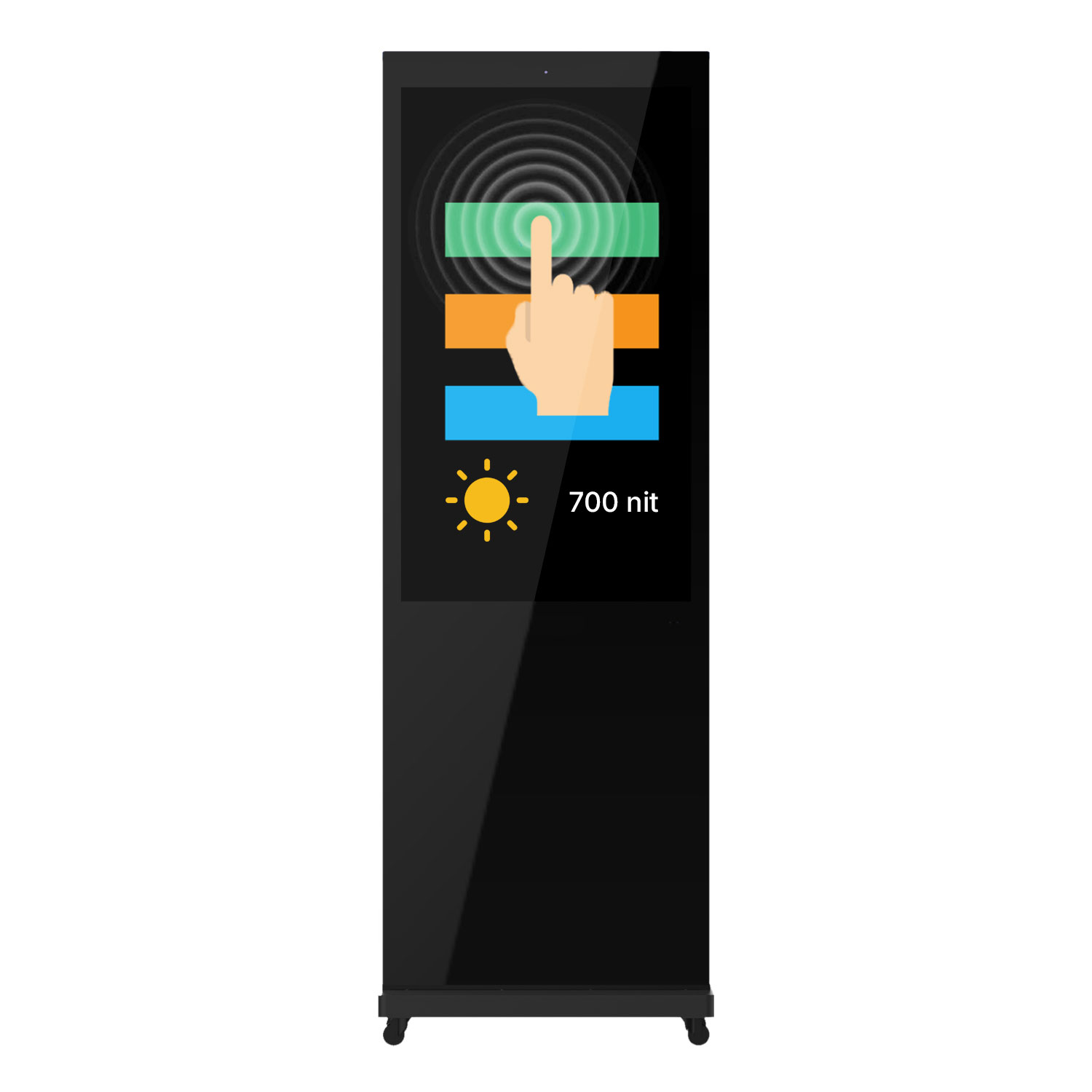 Totem multimediale da interno ad alta luminosità, ultra sottile e interattivo. Design minimale, Finitura vetro lucido verniciato in nero. Grazie alle ruote è possibile movimentarlo facilmente. Gode di 3 anni di garanzia e di tutta la qualità costruttiva Moai.