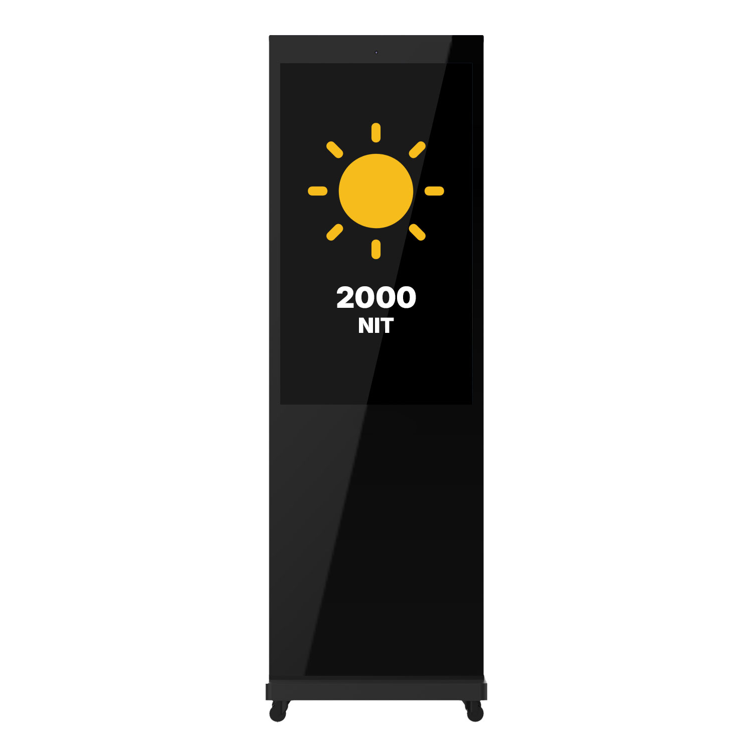 High-brightness, ultra-slim and interactive indoor multimedia totem. Minimalist design, glossy glass finish painted in black. Thanks to its wheels, it can be easily moved. It comes with a 3-year warranty and all Moai build quality.